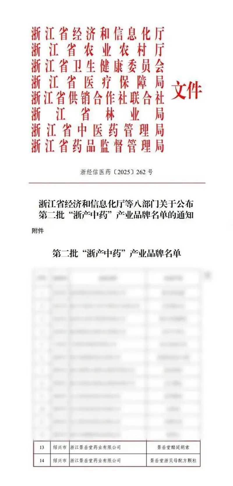 近日,浙江省經(jīng)濟和信息化廳等八部門聯(lián)合公布第二批“浙產(chǎn)中藥”產(chǎn)品品牌名單,浙農(nóng)中藥下屬景岳堂藥業(yè)生產(chǎn)的醋延胡索、浙貝母配方顆粒成功入選。